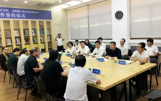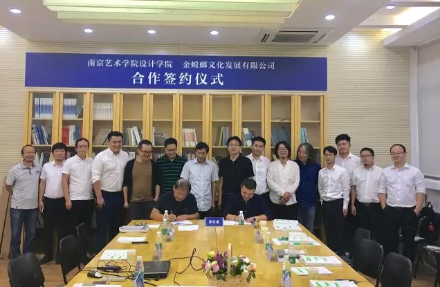 金螳螂文化公司董事長楊震、聯席總裁高珉、副總經理杜菊如、副總經理陳泓昕、策劃設計院院長劉軍、空間設計院院長婁曉軍、空間設計院聯席院長楊顏江和南京藝術學院院長劉偉冬、副院長呂斌、黨院辦主任郭峰、設計學院院長鄔烈炎、黨總支書記吳海卓、副院長蔣杰共同出席了簽字儀式。