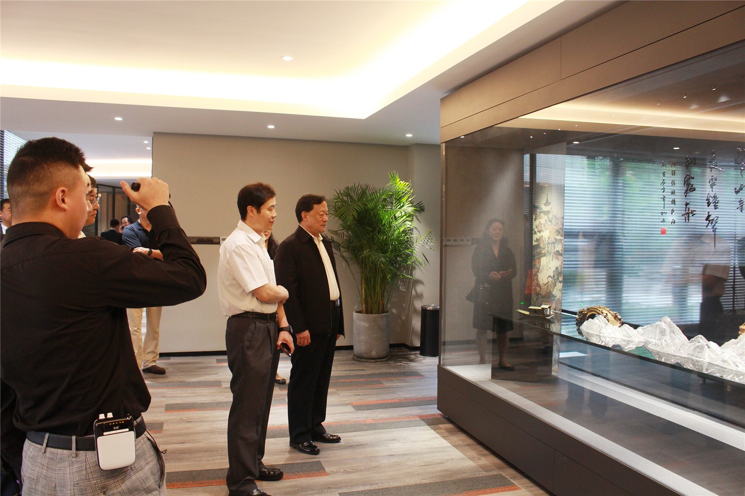 蘇州金螳螂文化發(fā)展股份有限公司董事長楊震熱情接待了工業(yè)和信息化部、中國建筑裝飾協(xié)會(huì)、蘇州市經(jīng)信委、工業(yè)園區(qū)管委會(huì)及宣傳部、斜塘街道等相關(guān)領(lǐng)導(dǎo)和12位國家工藝美術(shù)大師及教授等一行并陪同參觀考察。