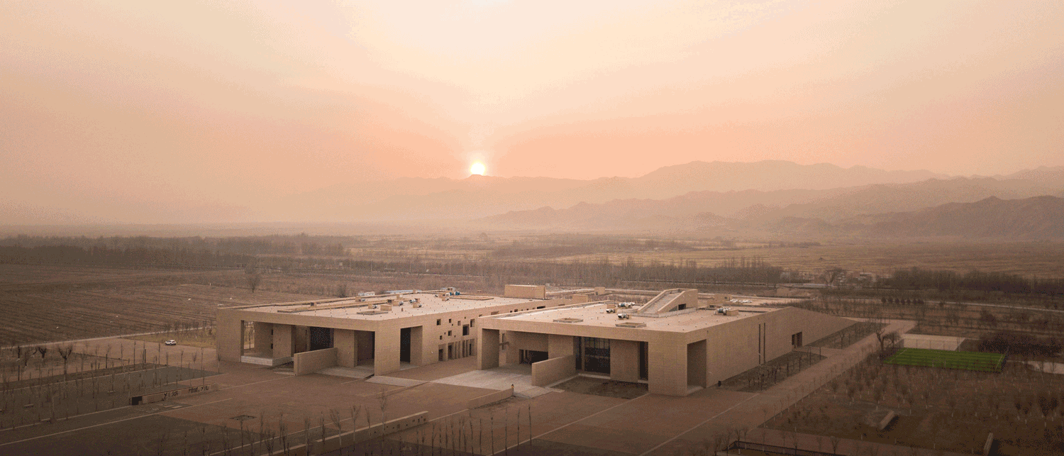 西夏博物館新館輪廓與賀蘭山的起伏暗合,與周圍環(huán)境融為一體。在建筑立面造型、設(shè)計(jì)元素及材質(zhì)的選擇上,新館主要結(jié)合了銀川的自然環(huán)境。為了最大限度地“融于”大地,新館在屋頂覆土,這種方式不僅降低了經(jīng)濟(jì)成本,還增加了保溫隔熱的厚度。