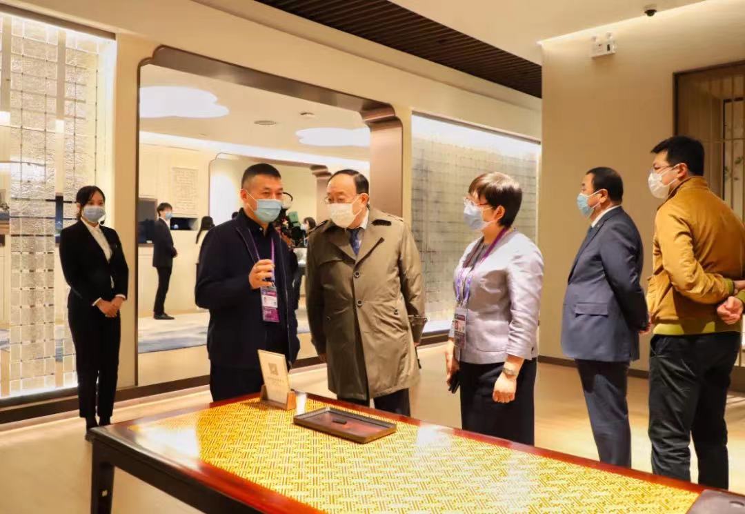 央視新聞等主流媒體全程報(bào)道, 全球首發(fā)、亞洲首秀、中國(guó)首展, 第四屆進(jìn)博會(huì)一展盡覽! 在進(jìn)博會(huì),不僅僅有 衣食住行的新奇體驗(yàn), 還蘊(yùn)含可感可觸的江南之美。 當(dāng)“蘇作館”遇上“進(jìn)博會(huì)”, 會(huì)碰撞出怎樣的妙趣呢? 讓我們來一探究竟。 (視頻) 中國(guó)國(guó)際進(jìn)口博覽會(huì)由中華人民共和國(guó)商務(wù)部和上海市人民政府主辦,中國(guó)國(guó)際進(jìn)口博覽局、國(guó)家會(huì)展中心(上海)承辦,是迄今世界上第一個(gè)以進(jìn)口為主題的國(guó)家級(jí)展會(huì)。 11月4日,第四屆中國(guó)國(guó)際進(jìn)口博覽會(huì)在上海開幕,國(guó)家主席習(xí)近平通過視頻發(fā)表主旨演講。本屆進(jìn)博會(huì)總展覽面積達(dá)36.6萬平方米,來自127個(gè)國(guó)家和地區(qū)的近3000家參展商亮相企業(yè)展。 今年5月,由金螳螂文化設(shè)計(jì)營(yíng)造的蘇作館在國(guó)家會(huì)展中心(上海)正式開館。 在第四屆進(jìn)博會(huì)這一世界級(jí)展廳,蘇作館更是將蘇州這座千年古城的獨(dú)特魅力以及藝巧工精、氣韻雅絕的蘇工蘇作之美展現(xiàn)給全世界。 蘇繡、緙絲、玉雕、核雕、蘇扇、明清家具、蟋蟀盆、鳥籠、仿古銅器……十多個(gè)蘇作門類在這里大集結(jié),200多位工藝美術(shù)大師和非遺傳承人的近千件蘇工蘇作藝術(shù)精品在這里亮相,為進(jìn)博會(huì)奉上了一道文化盛宴。 11月8日上午,商務(wù)部黨組成員、副部長(zhǎng),進(jìn)口博覽會(huì)組委會(huì)辦公室主任王炳南視察上海國(guó)展中心蘇作館,為蘇作館創(chuàng)新展示“江南文化”之美,并向世界展現(xiàn)“中國(guó)文化”之自信表示高度贊賞。 商務(wù)部黨組成員、副部長(zhǎng)王炳南視察蘇作館 金螳螂文化運(yùn)用古典園林營(yíng)造手法進(jìn)行藝術(shù)化空間處理,提煉富于特色的江南自然及人文元素,通過現(xiàn)代美學(xué)的整體設(shè)計(jì),充分展現(xiàn)“雅、精、細(xì)、巧”的蘇作共性。 自5月26日開館至今,蘇作館共接待入店客群近200批次,入店游客約2萬人次。 蘇作館將蘇工蘇作精品創(chuàng)新引入進(jìn)博會(huì)的場(chǎng)館上海國(guó)家會(huì)展中心,不僅僅在進(jìn)博會(huì)期間展示蘇工蘇作之美,進(jìn)博會(huì)閉幕后,也將持續(xù)展現(xiàn)蘇式生活、弘揚(yáng)江南文化。