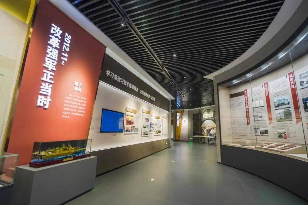 展覽設計中,金螳螂文化以經典展現手法為主,輔以現代技術表達,優化布局結構,豐富布展形式,增強時代感。同時采用立體圖板、實物展品、沉浸式軍事場景、軍事推演沙盤、視頻影片等多樣化的展陳方式手段。