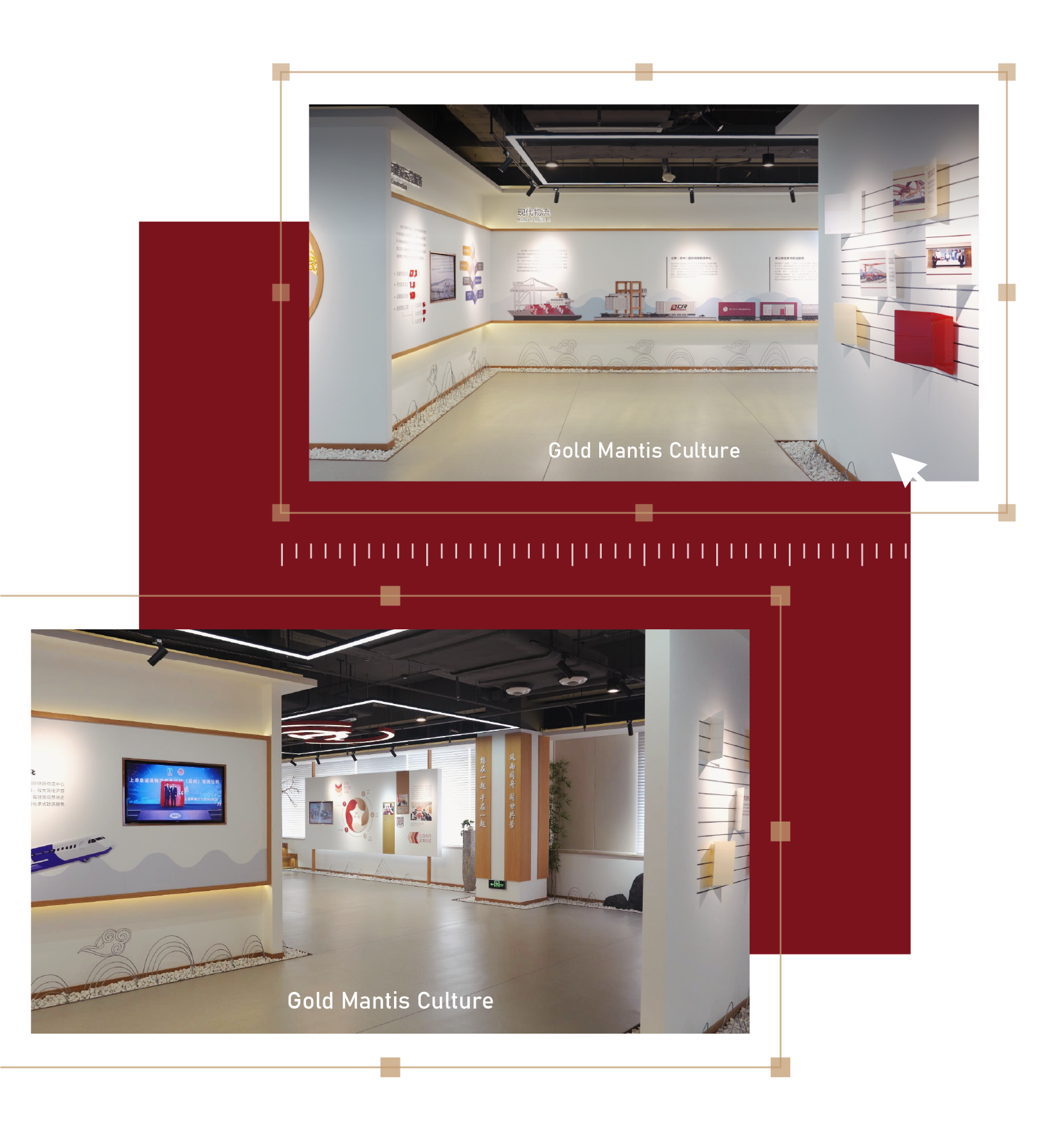 一輛輛貨車有序駛過 窗外物流中心各色集裝箱堆疊 在新城黨建綜合陣地 竹影搖曳,木色溫潤 細細述說新城逐夢發展之旅 蘇州新城投資發展有限公司是蘇州市國資委管理的市屬國有企業。 公司以姑蘇平江、滄浪、金閶三新城開發建設為起點,積極搶抓“一帶一路”、長江經濟帶、長三角區域一體化、自貿區等重大戰略疊加機遇,逐步形成城市建設、運營、服務和現代物流兩大主業。 金螳螂文化出品蘇州新城投資發展有限公司逐夢館,承載黨的文化,延續并傳遞企業精神。 設計中融入中式元素與企業特色符號,定制化呈現不一樣的黨建綜合陣地。 逐夢館由序廳、主責主業、新城黨建、未來展望幾個部分組成,以鮮明的市黨委精神為主線,貫穿場館的理念、視覺、環境、行為、文化、構建和諧統一的文化體系。 金螳螂文化設計團隊通過分析蘇州市的地域文化和人文精神,風土風貌,從中挖掘所在地區的文化屬性。 創新設置時間軸互動展項,轉動手柄即可直觀了解企業大事記,回顧企業發展歷程。 在介紹現代物流業版塊,運用滑軌移動屏清晰闡釋企業的業務構成。 新城新起點,共創新發展。從江南水鄉到三秦大地,金螳螂文化為博物館、規劃館、科技館、美術館、城市文化館、主題樂園、歷史街區等客戶提供空間環境藝術策劃、設計、多媒體與場景藝術創作、布展施工整體解決方案,詮釋空間故事,彰顯文化價值。