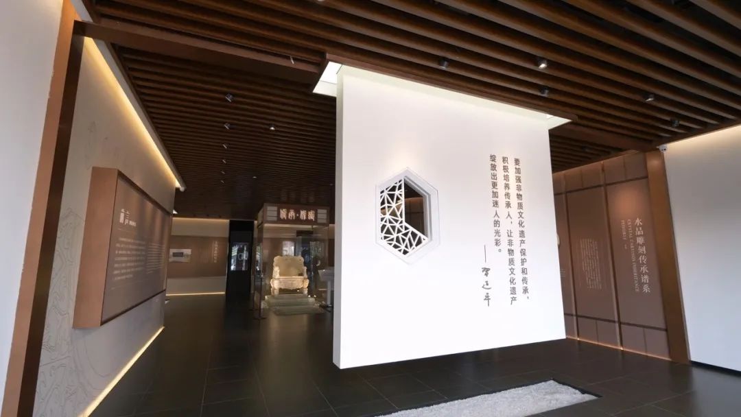 全國唯一一個(gè) 以國家級(jí)項(xiàng)目水晶雕刻為主題的展覽館 東海水晶雕刻非遺館順利開館! 在這里 全方位體驗(yàn)東海水晶雕刻的魅力 欣賞東海水晶雕刻藝術(shù)精品 解讀古今中外水晶文化的歷史演變 開啟一場水晶非遺傳承的研學(xué)之旅 (視頻號(hào)) 9月20日,東海水晶雕刻非遺館開館儀式暨2023“錫山·東?!眱?yōu)秀非遺項(xiàng)目聯(lián)展舉行。國家文旅部原副部長、直屬機(jī)關(guān)黨委書記??巳剩B云港市副市長、東??h委書記宋波共同為東海水晶雕刻非遺館揭牌。 東海水晶雕刻非遺館坐落于江蘇省連云港市中國水晶文化創(chuàng)意產(chǎn)業(yè)園,建筑面積4500余平方米,內(nèi)有藏品150余件。 △ 建筑外立面的實(shí)施中,金螳螂文化采用水晶的截面六邊形為元素,定制化設(shè)計(jì)了穿孔鋁板和燈具 2021年,東海水晶雕刻技藝入選國家級(jí)非物質(zhì)文化遺產(chǎn)保護(hù)名錄,標(biāo)志著東海縣非遺工作邁向嶄新的一步。 深入挖掘非遺水晶雕刻的文化內(nèi)涵,合理規(guī)劃展示內(nèi)容,金螳螂文化項(xiàng)目團(tuán)隊(duì)力求在展館空間內(nèi)全景呈現(xiàn)水晶雕刻作品之精美、雕刻技藝之精湛,展現(xiàn)非遺文化的傳承延續(xù)之脈絡(luò)。 △ 透過花窗,“傳承·保護(hù)”四個(gè)字映入眼簾,展現(xiàn)著非遺精神 進(jìn)入序廳,中心位置是展館之最“仿古水晶九龍椅”,之后是東海水晶雕刻傳承人譜系、水晶詩詞多媒體、水晶的形成與郯廬地震遺址等內(nèi)容展示。 晶彩歲月,傳承致遠(yuǎn)。U型投影幕與沙盤燈控相結(jié)合,展示中國古代時(shí)期各地出土的水晶器物和玉石雕刻的技藝的傳承。 地面的水晶沙盤和影片聯(lián)動(dòng),可以欣賞中國歷代各個(gè)時(shí)期出土的水晶地域分布,沉浸式感受水晶雕刻技藝及文化源流。 “天工·水晶的匠心綻放”展區(qū),以清光緒十七年李澄淵所繪《玉作圖》為浮雕背景,展示了古人對水晶雕刻經(jīng)驗(yàn)的長期積累并世代傳承。 中心桌上打造IP卡通人物模型古代水晶雕刻技藝十二圖技法展演,刻畫了雕琢匠人操作的場面并備注操作說明,可以通過VR眼鏡看到動(dòng)態(tài)的雕琢場景,體現(xiàn)講習(xí)互動(dòng)、展示體驗(yàn)等非遺傳承功能。 以多媒體《甲天下的東海水晶》、產(chǎn)業(yè)媒體觸摸柱、東海水晶雕刻發(fā)展之路榮譽(yù)墻、東海水晶雕刻工具沿革、東海水晶雕刻藝術(shù)精品等影視圖文和實(shí)物,充分展示水晶雕刻由小到大,從弱漸強(qiáng),由粗變精,形成了多種流派共同發(fā)展的格局,具有時(shí)代藝術(shù)價(jià)值。 在建設(shè)中更多地采用現(xiàn)代科技技術(shù),根據(jù)展廳的不同部分和不同展出內(nèi)容調(diào)配燈光,設(shè)置U型幕與沙盤燈控結(jié)合的展示形式,打造了IP卡通人物展示模型,電子模擬水晶雕刻操作流程等互動(dòng)體驗(yàn)設(shè)施。 在項(xiàng)目實(shí)施過程中,金螳螂文化各部門通力配合,保質(zhì)保量地完成項(xiàng)目完工節(jié)點(diǎn),得到了業(yè)主認(rèn)可并收獲了表揚(yáng)信和獎(jiǎng)牌。 東海水晶雕刻非遺館的開館,將進(jìn)一步擴(kuò)大東海水晶雕刻國家級(jí)非遺項(xiàng)目的影響力,為東海水晶雕刻項(xiàng)目的傳承弘揚(yáng)和文旅產(chǎn)業(yè)的持續(xù)發(fā)展提供強(qiáng)力支撐。 新聞素材來源:東海文旅、江蘇省非遺保護(hù)協(xié)會(huì)