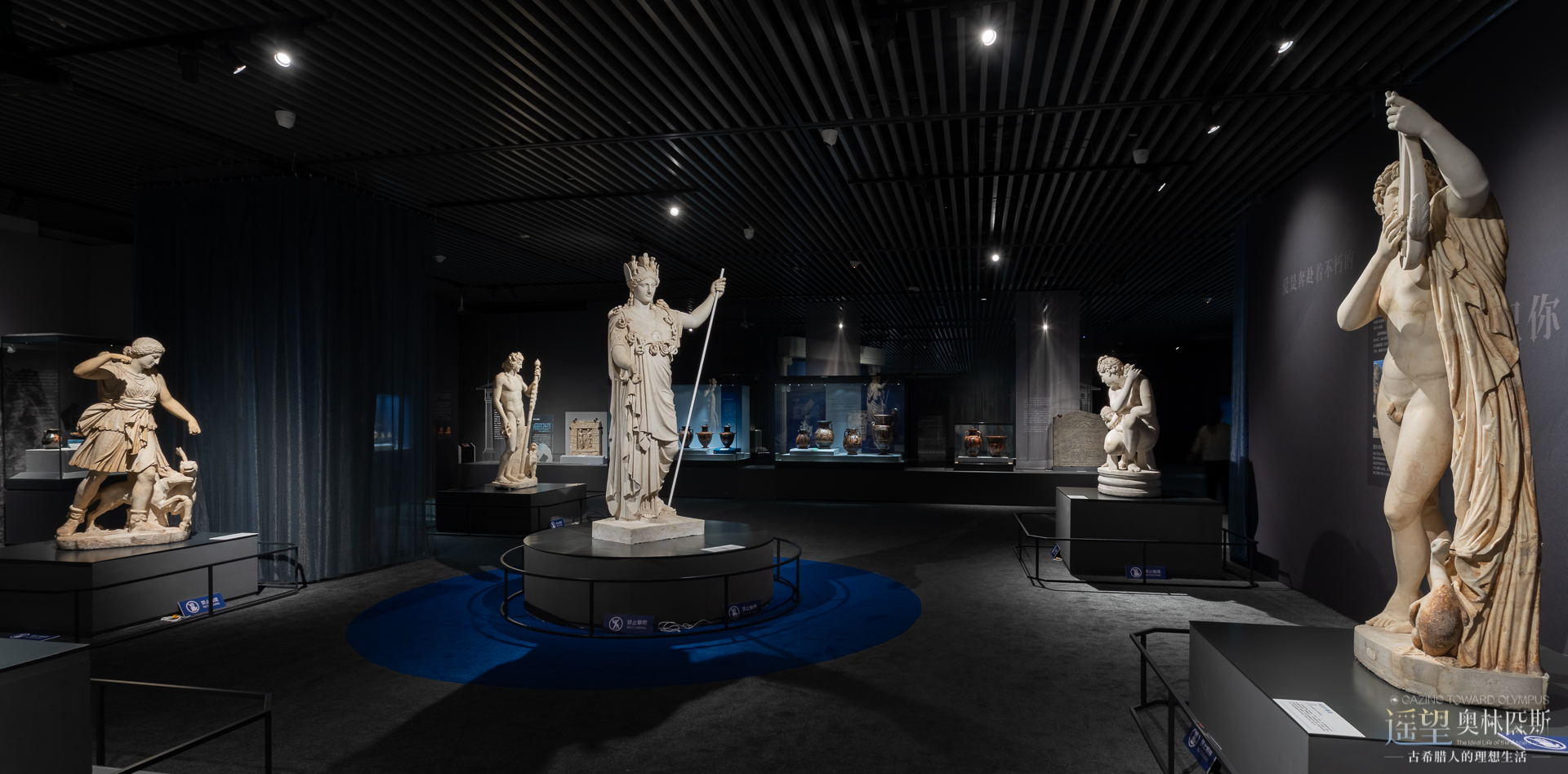 超1000平米大型展陳空間 超120件(套)精品文物 超100幅古希臘社會生活圖景 超2米高古希臘雕塑 當(dāng)諸神“降臨”,當(dāng)英雄“來襲” 在安徽博物院,遙望奧林匹斯 走進(jìn)古希臘人的理想生活 7月10日,由安徽博物院(安徽省文物鑒定站)、意大利那不勒斯國家考古博物館主辦,金螳螂文化設(shè)計(jì)實(shí)施的“遙望奧林匹斯——古希臘人的理想生活”特展在安徽博物院開幕。 古希臘文明被稱作“整個(gè)西方文明的搖籃”。浪漫的神話、英勇的傳說天馬行空又燦爛瑰麗,崇高的悲劇、唯美的詩歌宏大壯麗又細(xì)膩優(yōu)雅,卓越的追尋、熱血的競技激情澎湃又振奮人心。 展覽以理想為主題,以希臘神話、城邦生活、文學(xué)藝術(shù)、體育競技為線索,通過“與神”“同樂”“并肩”三個(gè)單元,展現(xiàn)古希臘人在信仰指引下對自身、人性、道德和命運(yùn)的持續(xù)探索以及對美、自由、平等和卓越的不懈追求,勾勒出古希臘人的理想生活圖景。 本次展覽的主題色使用地中海藍(lán),使觀眾感受到愛琴海的浪漫與夢幻,展廳內(nèi)采用深色墻面,與眾神雕像形成強(qiáng)烈的視覺對比,結(jié)合燈光的設(shè)計(jì),營造了神秘而莊重的觀展氛圍。 金螳螂文化項(xiàng)目團(tuán)隊(duì)在展覽設(shè)計(jì)中采用如實(shí)的自然模仿,從古希臘神廟建筑中提取了裝飾元素,將自然之美融入展廳設(shè)計(jì)中,勾畫出古希臘人的理想生活世界,解讀古希臘文明的精神密碼。 在空間營造方面,展廳通過精確的比例和平衡的布局,展現(xiàn)出和諧的美感,并且根據(jù)不同展品的尺寸和形態(tài),通過各類展柜、展臺的運(yùn)用和分布,形成了多層次的空間結(jié)構(gòu)。 展覽精心設(shè)置了互動打卡環(huán)節(jié),聽完極具含金量的免費(fèi)講解,再來蓋個(gè)章讓“眾神歸位”。 跨越時(shí)間與空間 百余件精品文物遠(yuǎn)渡重洋 首次亮相安徽 超百幅古希臘生活圖景全軸展現(xiàn) 沉浸式展陳空間帶您穿越時(shí)空! 特 展 信 息 展覽名稱:遙望奧林匹斯——古希臘人的理想生活 展覽時(shí)間:2024.7.10-2024.10.10 展覽地點(diǎn):安徽博物院蜀山館(新館)二層臨展廳