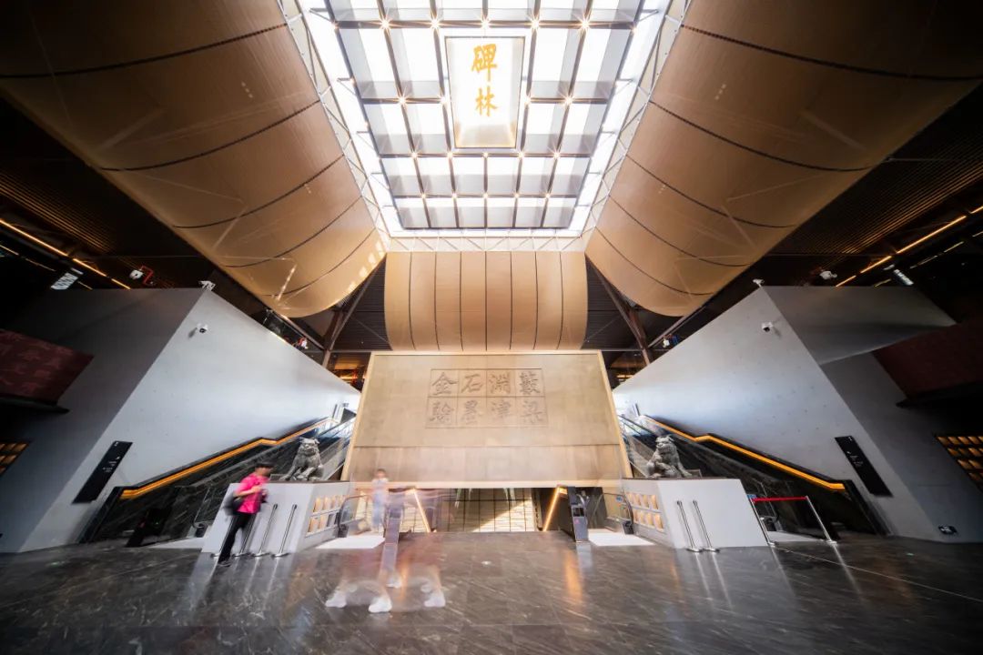 金石淵藪,翰墨津梁 東方文化寶庫 西安碑林博物館 驚艷歸來! 西安碑林博物館全新展陳開放 整座博物館展陳面積 躍升至23000平方米 新增五大常設(shè)展覽 展出文物增至2000余件 類型更加豐富 北區(qū)場館為一座地上一層、地下二層的大型清水混凝土建筑。陳列展覽大氣宏闊、莊嚴(yán)肅穆,結(jié)合建筑所構(gòu)造的空間形式,通過互聯(lián)網(wǎng)+數(shù)字展覽等創(chuàng)新設(shè)計方式,加強對館藏文物的活化利用。 金螳螂文化設(shè)計實施位于北區(qū)新館一層的“星耀長安——西安碑林博物館碑刻珍品展”。 “星耀長安——西安碑林博物館碑刻珍品展”通過26方碑刻珍品和中國碑文化、王羲之書法精神、顏真卿書法精神、柳公權(quán)書法精神、唐代佛教文化、碑刻生命之傳續(xù)等六組專題,全面展示了西安碑林館藏碑刻珍品的歷史價值和藝術(shù)價值。 該展覽中七方顏碑、五方柳碑首次集中展出。其中,顏真卿書馬璘新廟碑、柳公權(quán)書楊承和碑、嚴(yán)公貺墓志為首次展出。 這些碑刻從原本緊密陳列的老館區(qū)搬到了寬敞明亮的“豪華單間”,讓游客可以360度無死角欣賞碑石文化。此外,還增加了多媒體設(shè)備和互動展項,為游客帶來全新的文化體驗。 巍巍秦嶺下,三秦大地上 有中華文明氣勢恢宏的開篇 鑒往知來,向史而新! (視頻號:陜視新聞)